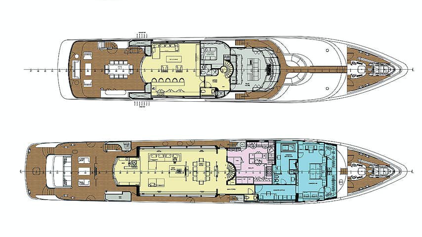 Designed as a luxury six stateroom motoryacht with elevator service to all four decks, the semi-displacement 168’ Trinity Tri-Deck has a top speed of 23 knots, shallow draft of less than 8’, under 500 gross tonnage, and was constructed under ABS oversight and standards. In addition to the aluminum hull and superstructure which are approximately 95% complete, the vessel comes with a long list of inventory and parts including: